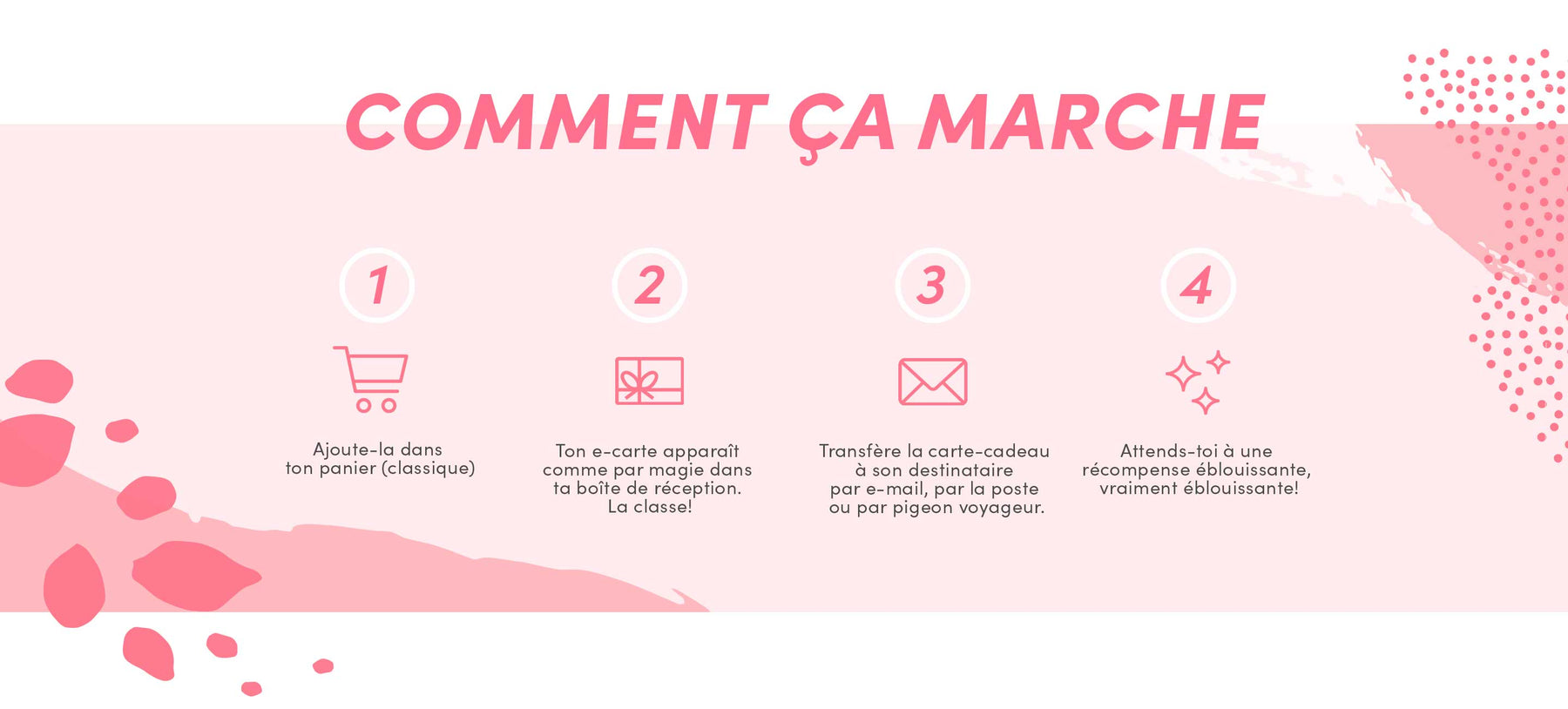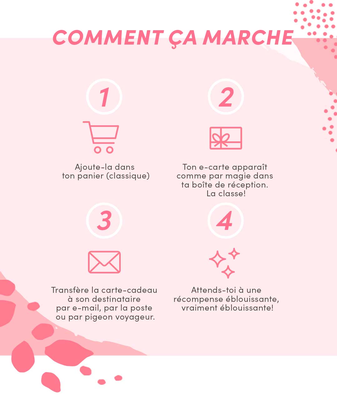 Idéales pour les amis exigeants, difficiles, les cadeaux de dernière minute ou si tu es plus généralement à cours d'idée de cadeaux. Valables sur tous nos produits, nos cartes cadeau feront fureur auprès de son destinataire!